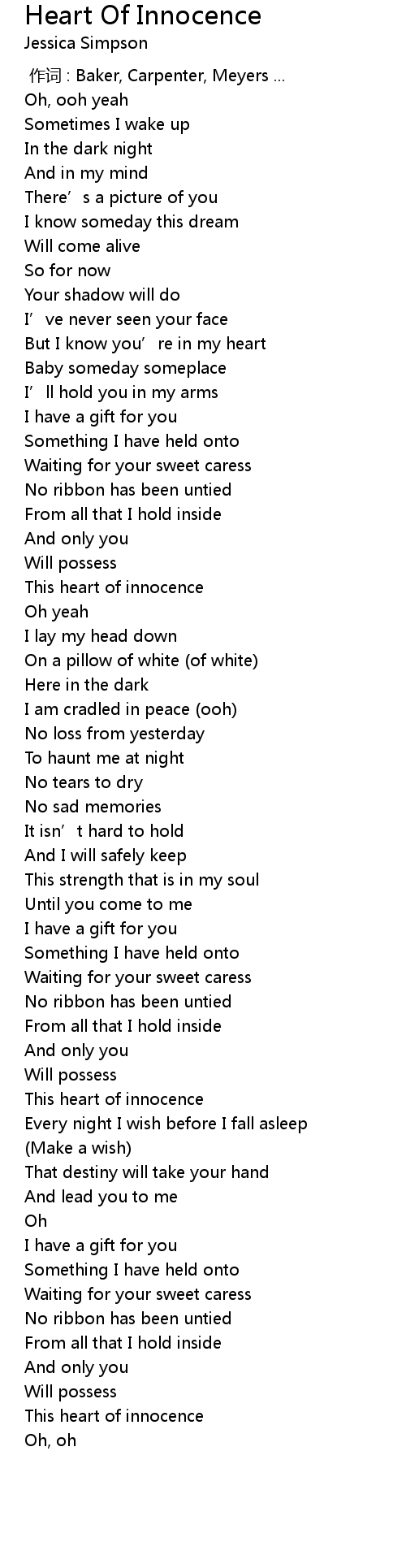 | [00:00.00] | 作词 : Baker, Carpenter, Meyers ... |