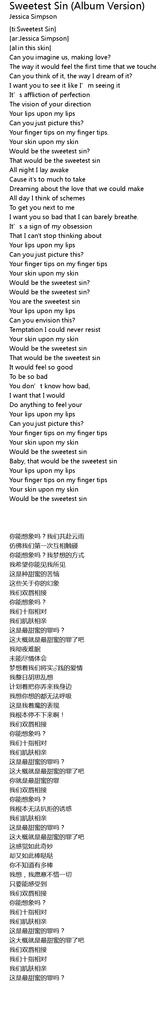 | [02:48.36] | Baby, that would be the sweetest sin |