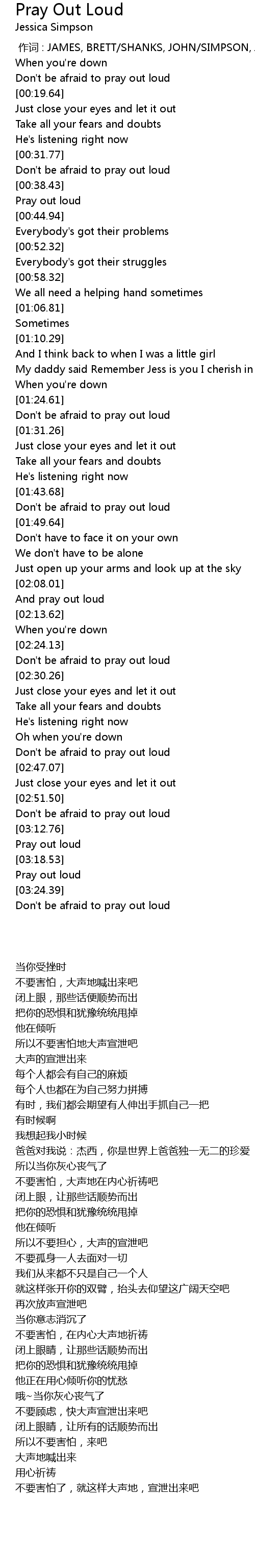 | [03:19.91] | Pray out loud |