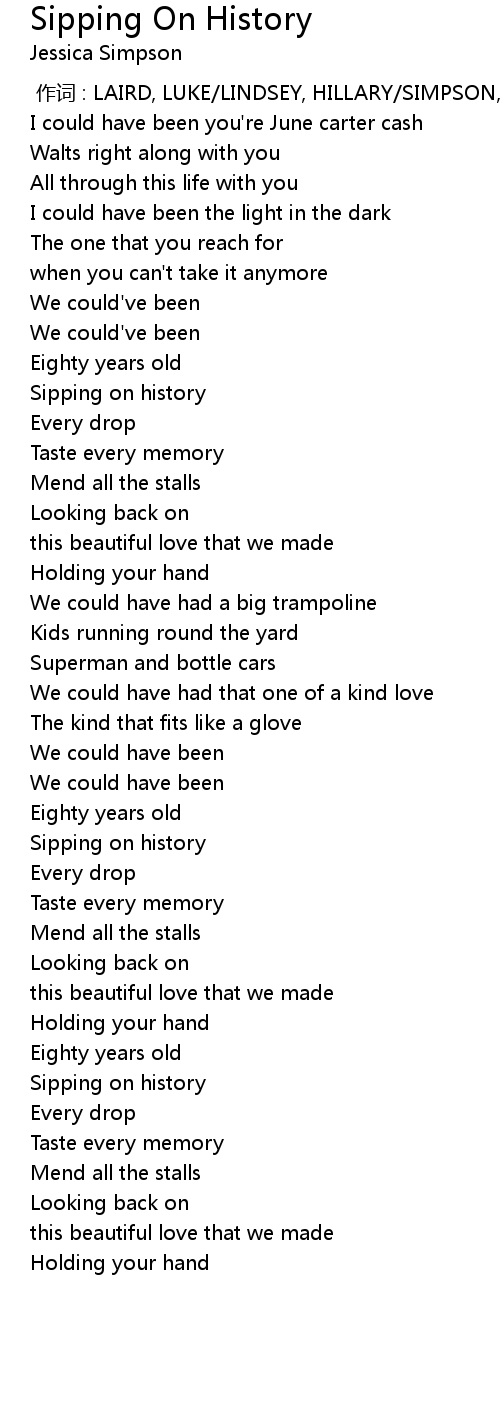 | [00:00.00] | zuò cí : LAIRD, LUKE LINDSEY, HILLARY SIMPSON, JESSICA |