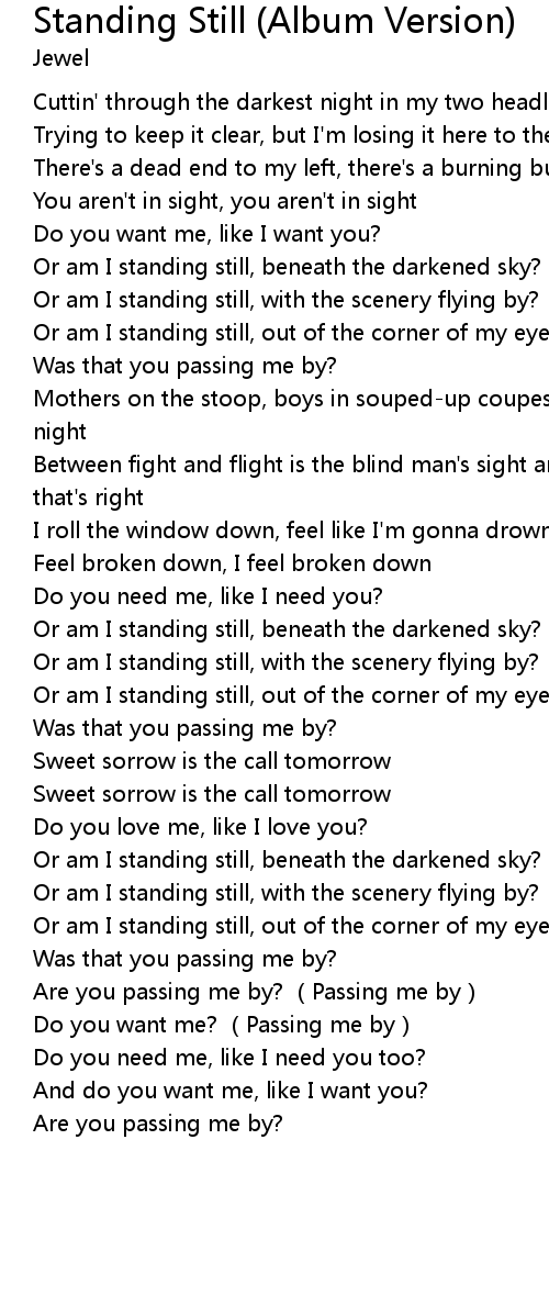 | [01:15.55] | Or am I standing still, out of the corner of my eye? |