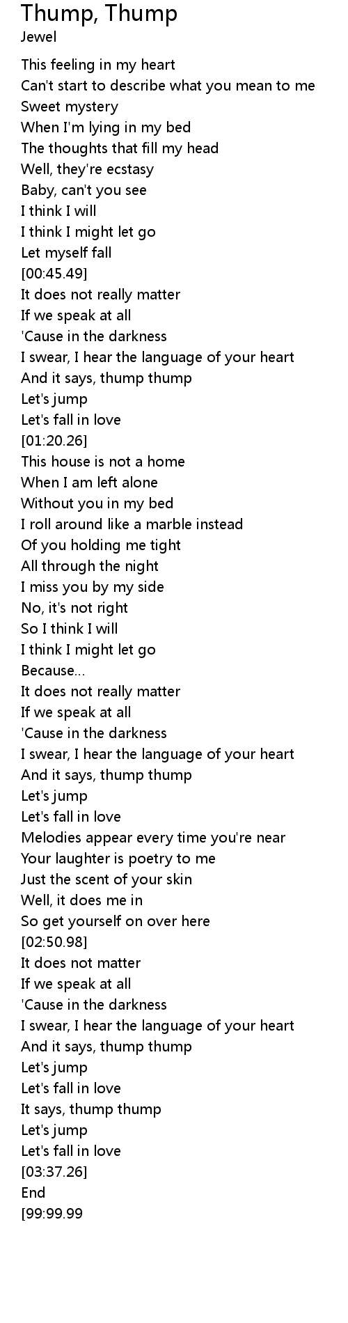 | [02:20.86] | And it says, thump thump |