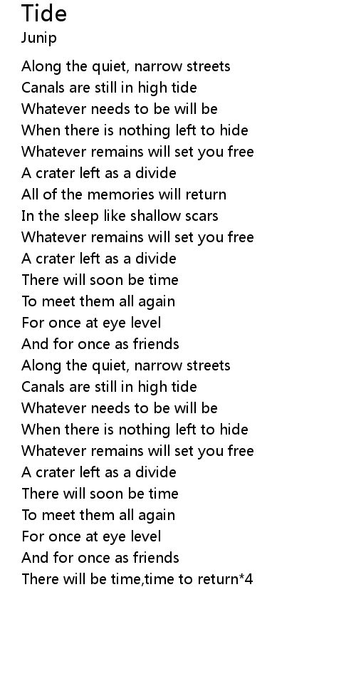 | [00:22.10] | Canals are still in high tide |
