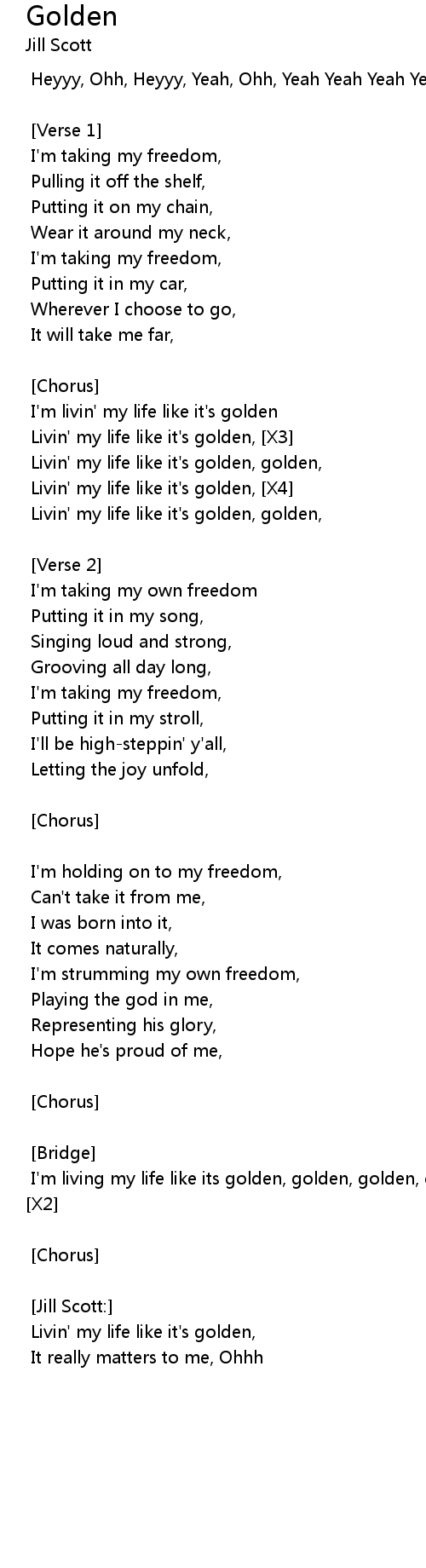 I'm living my life like its golden, golden, golden, golden, golden, golden, [X2]