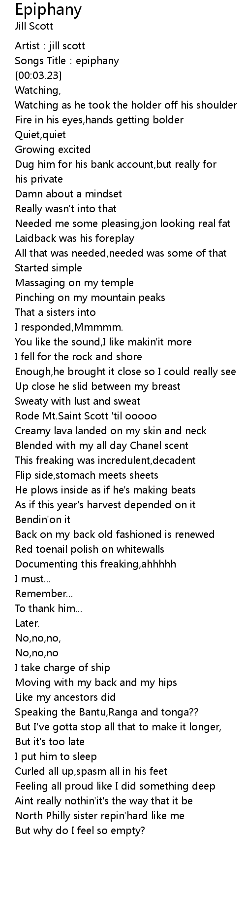 | [01:06.49] | Creamy lava landed on my skin and neck |