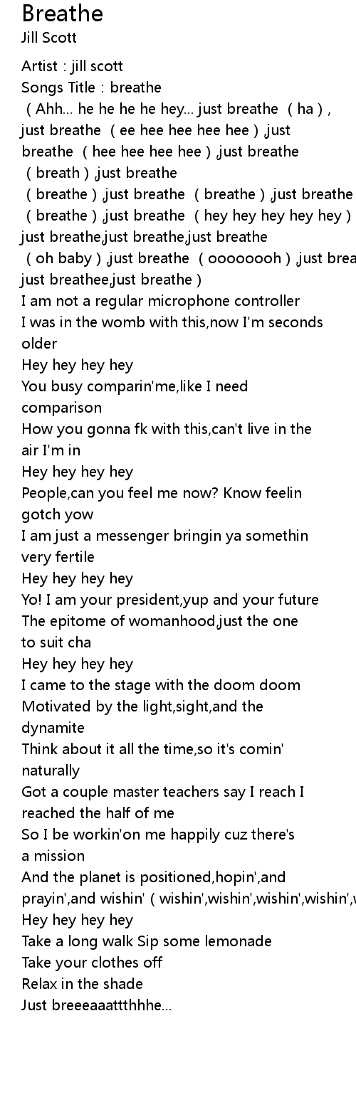 | [00:34.30] | oh baby, just breathe oooooooh, just breathe, |
