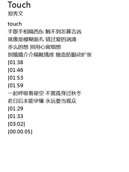 | [02:42][01:53][00:50] | touch 我的心动 我心失重 失重 失控 |