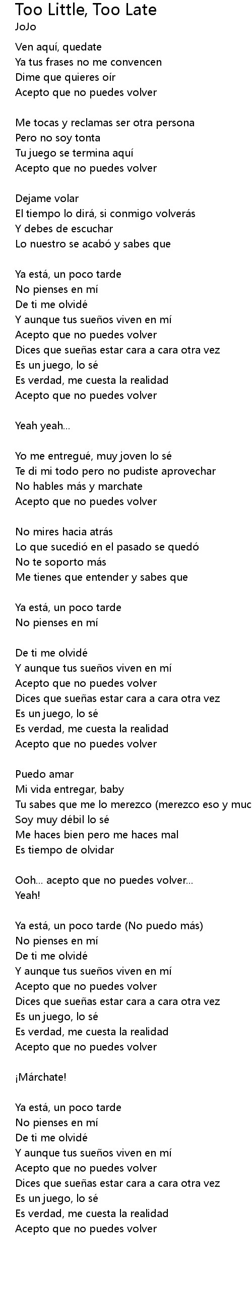 | Ya está, un poco tarde (No puedo más) | |