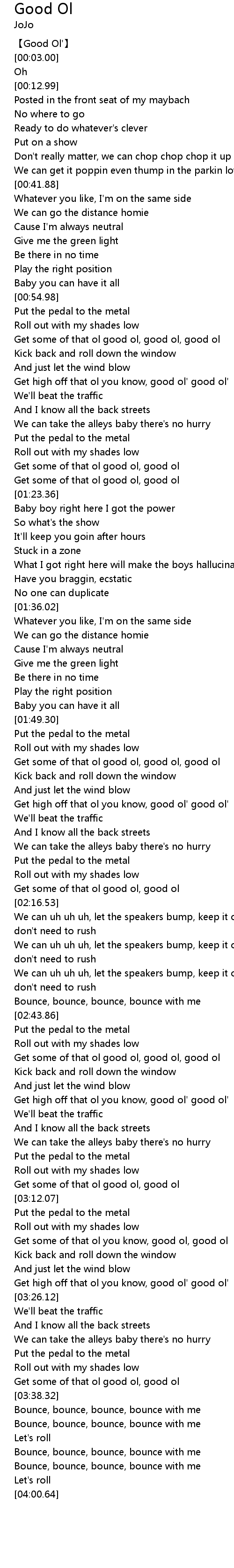 | [00:00.00] | Good Ol' |