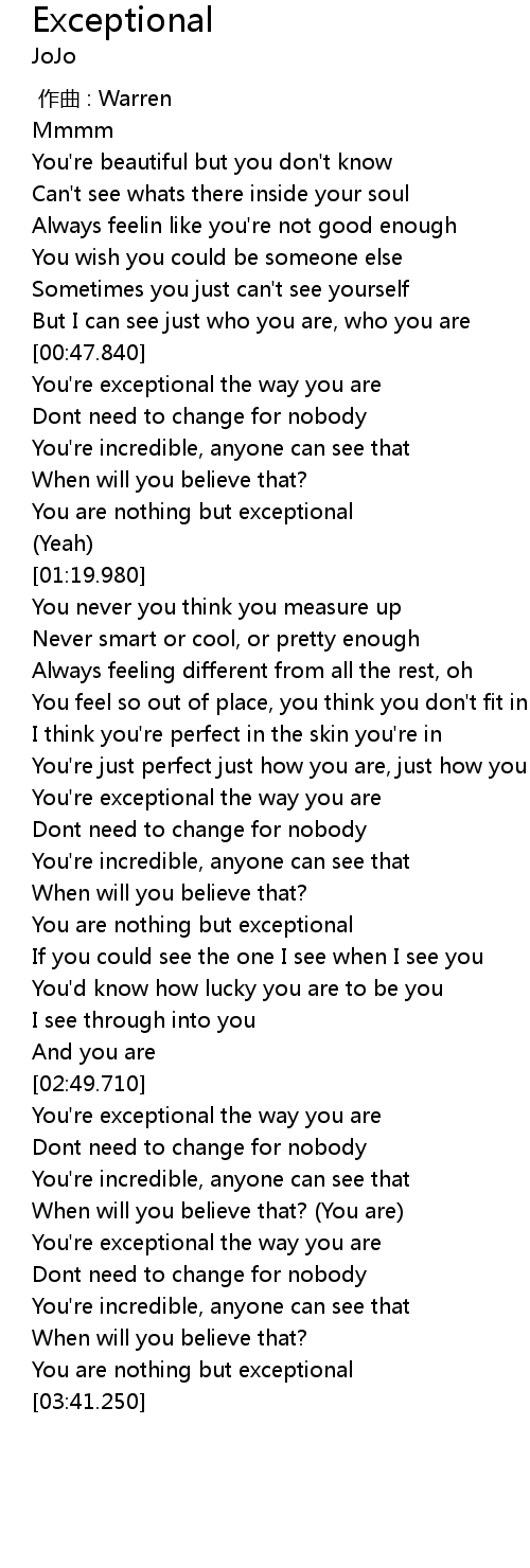 | [01:49.780] | You're just perfect just how you are, just how you are, yeah |