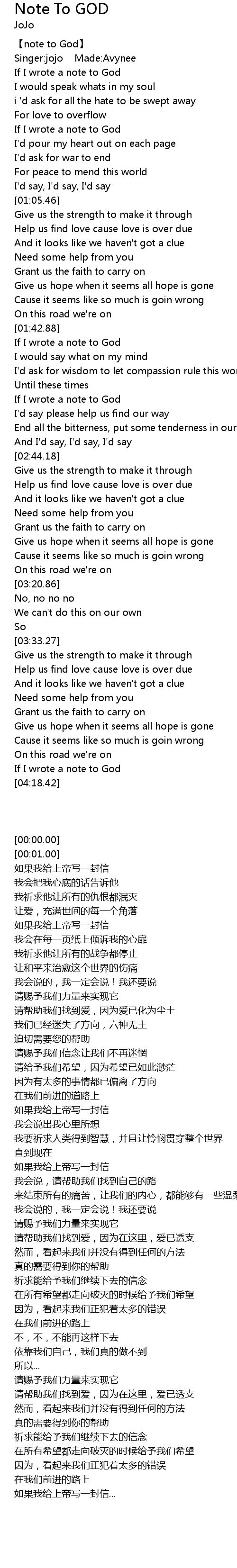 | [00:00.00] | 【note to God】 |