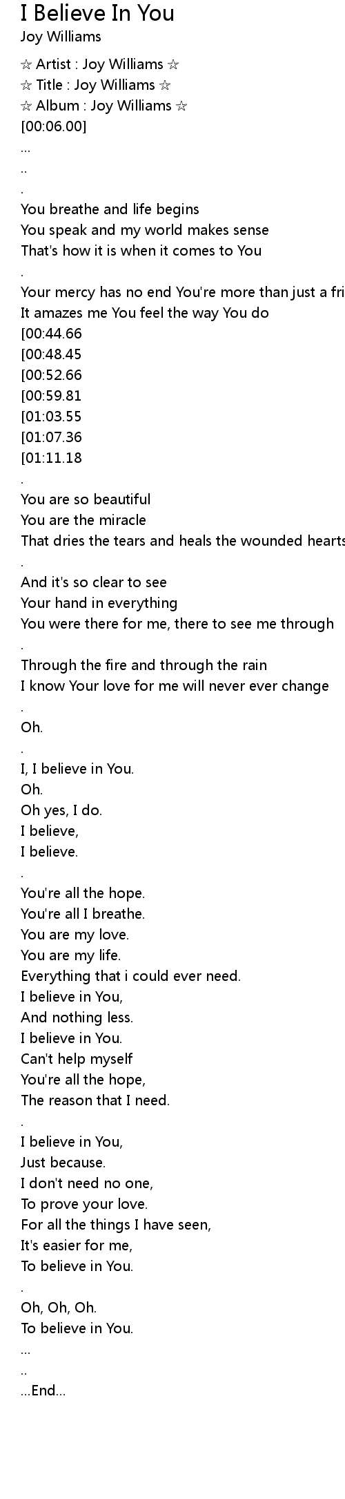 | [01:51.02][00:44.66] | I believe in You, and nothing less |