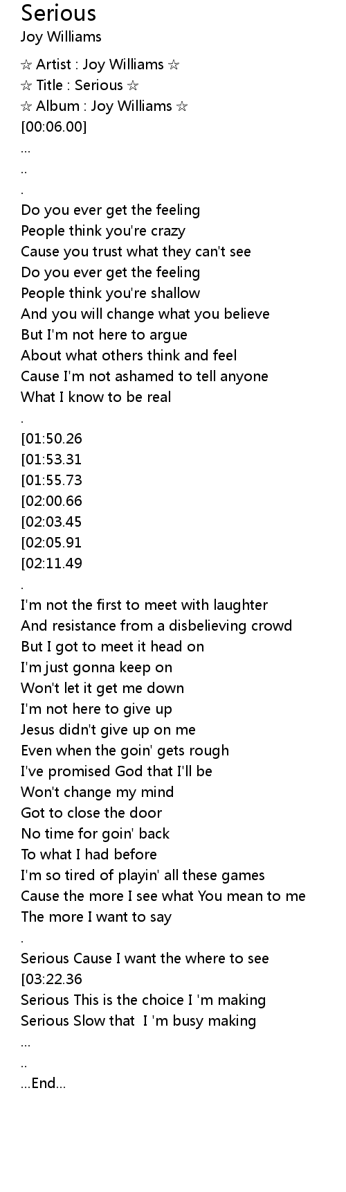 | [00:04.00] | ☆ Album : Joy Williams ☆ |