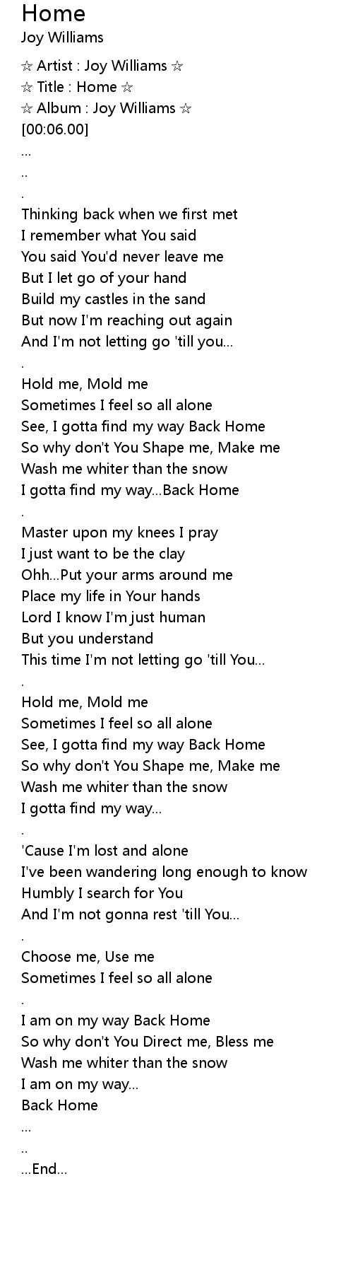 | [01:12.00] | See, I gotta find my way Back Home |