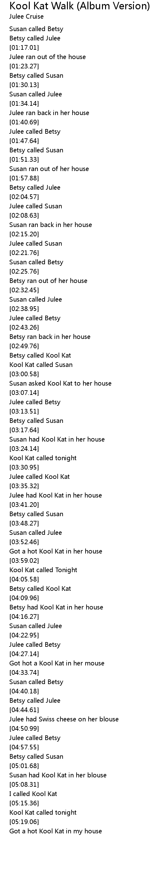 Betsy had Kool Kat in her house |
