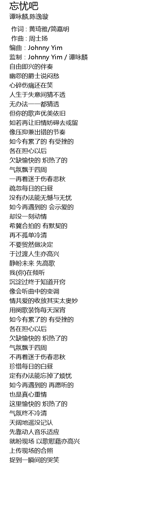 | [03:15.04] | dìng yǒu bàn fǎ néng wàng diào le fán yōu |
