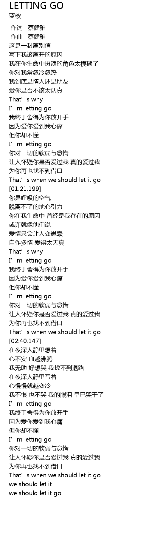 | [02:32.147] | That' s when we should let it go |