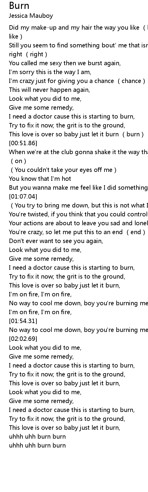 | [00:39.67] | I need a doctor cause this is starting to burn, |