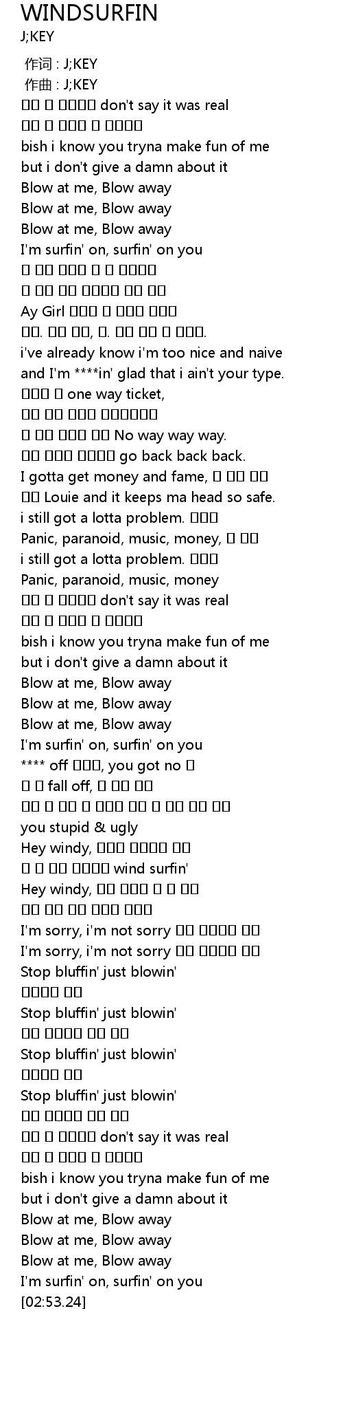 | [01:55.56] | Hey windy, 언제든 불어와도 좋아 |