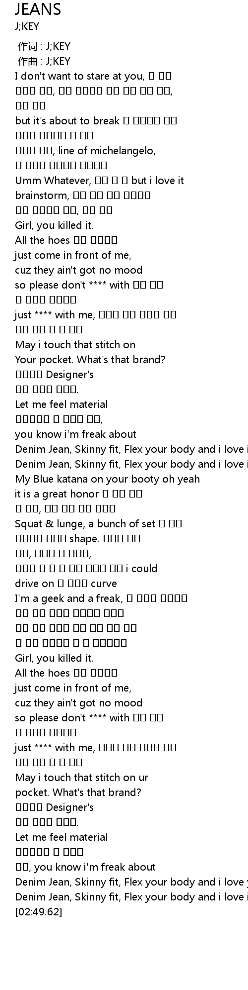 | [02:31.64] | Denim Jean, Skinny fit, Flex your body and i love ya |