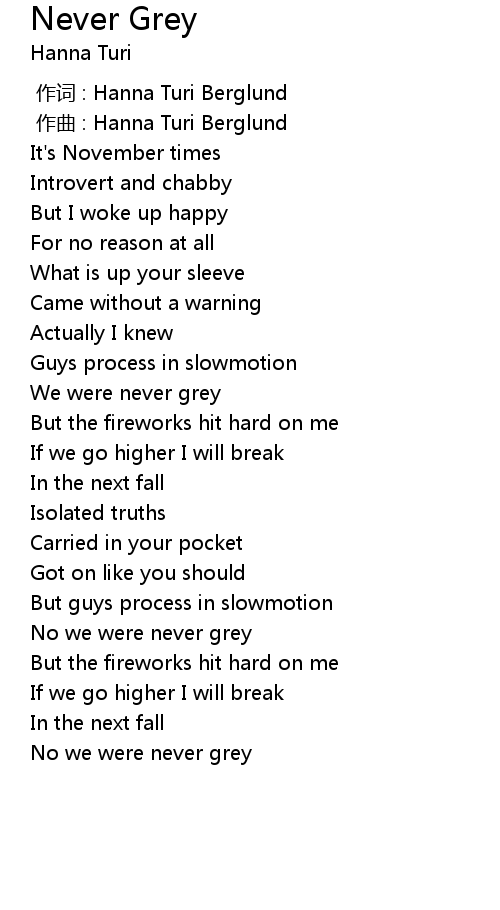 | [00:00.000] | 作词 : Hanna Turi Berglund |
