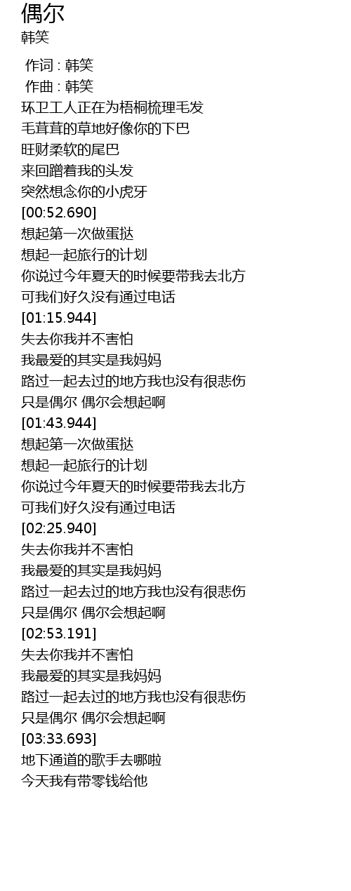 | [02:45.691] | zhǐ shì ǒu ěr ǒu ěr huì xiǎng qǐ a |