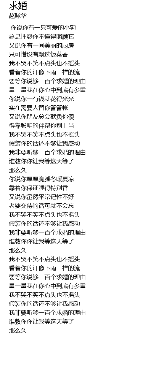 | [02:50.899] | 我非要听够一百个求婚的理由 |