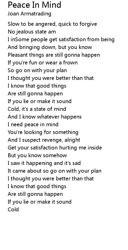 Peace In Mind 歌词