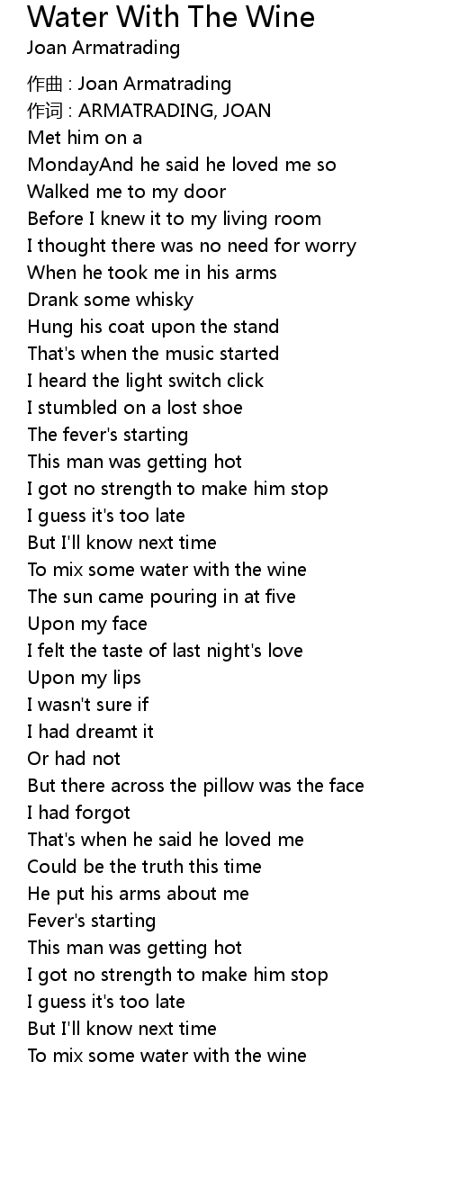 | 歌曲 | Water With The Wine |