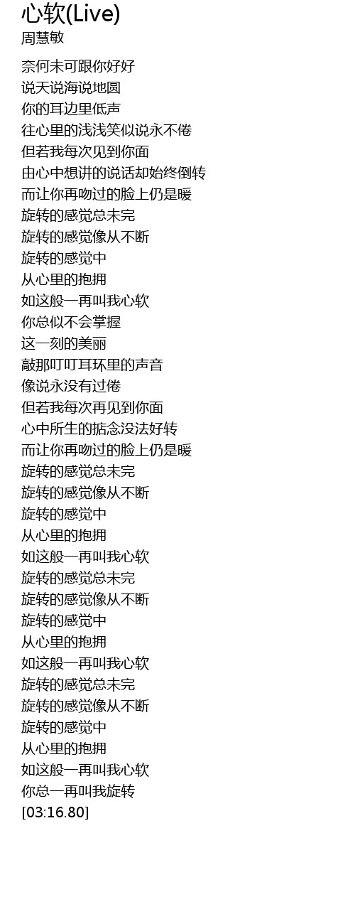 | [03:01.53] | ru zhe ban yi zai jiao wo xin ruan |