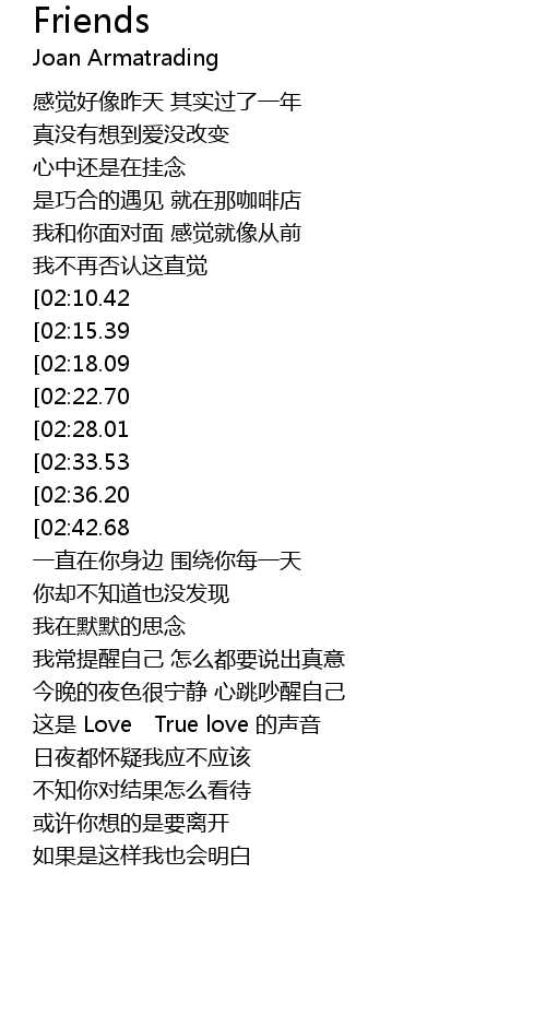 | [01:01.75][02:22.70][03:19.25][03:55.67] | jì xù zhǐ zuò pǔ tōng péng yǒu |