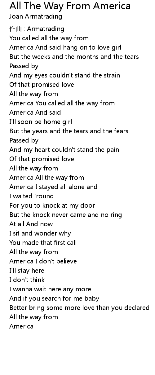 | 歌曲 | All The Way From America |