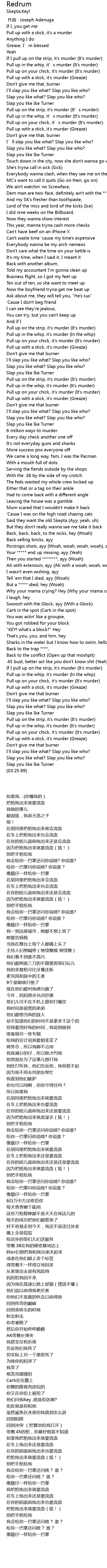 | [00:13.03] | If I pull up on the strip, it's murder (It's murder) |