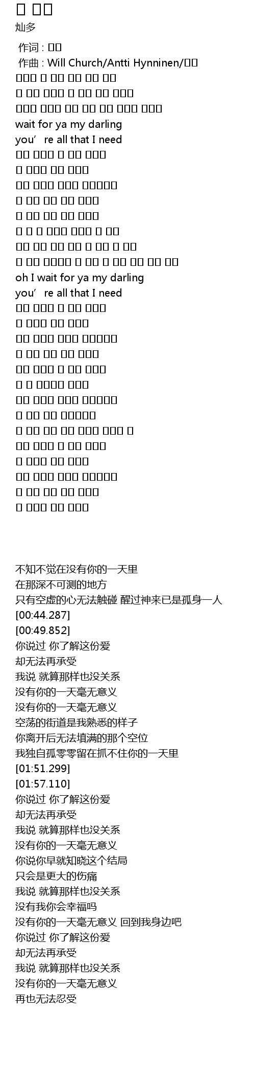| [02:20.906] | 没有你的一天毫无意义 |