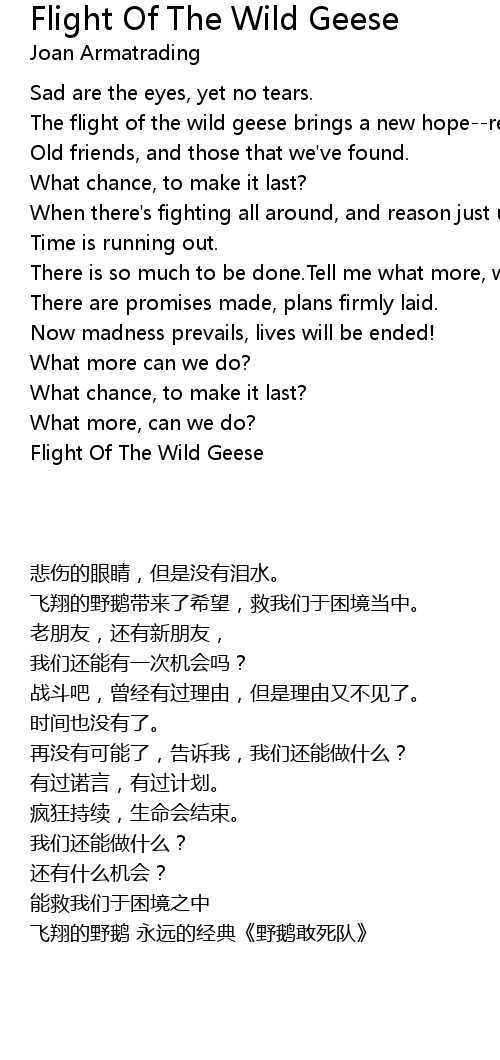 The flight of the wild geese brings a new hope--rescue from all this. |