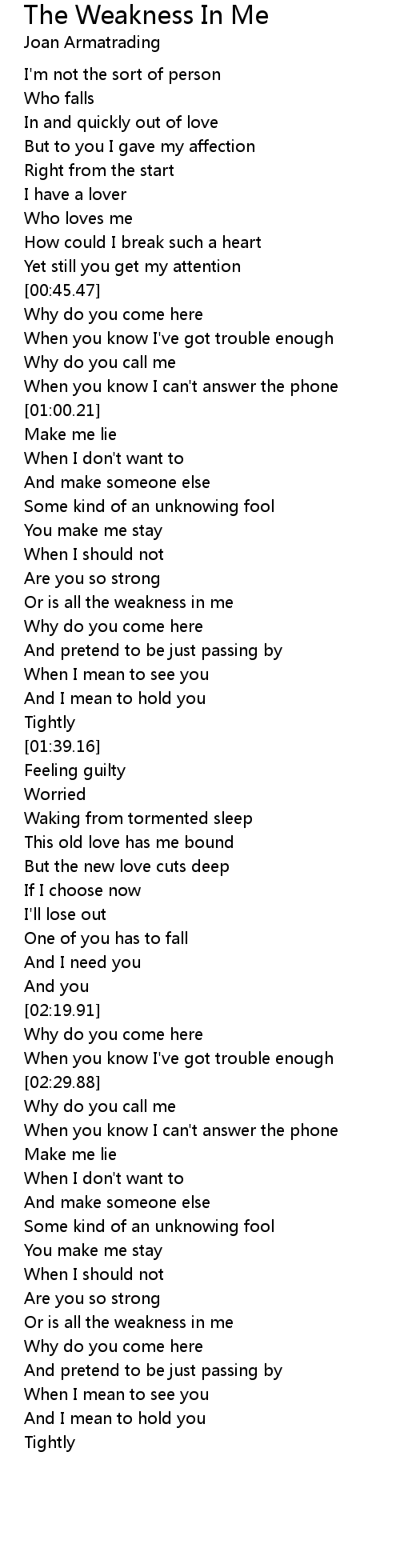 The Weakness In Me 歌词