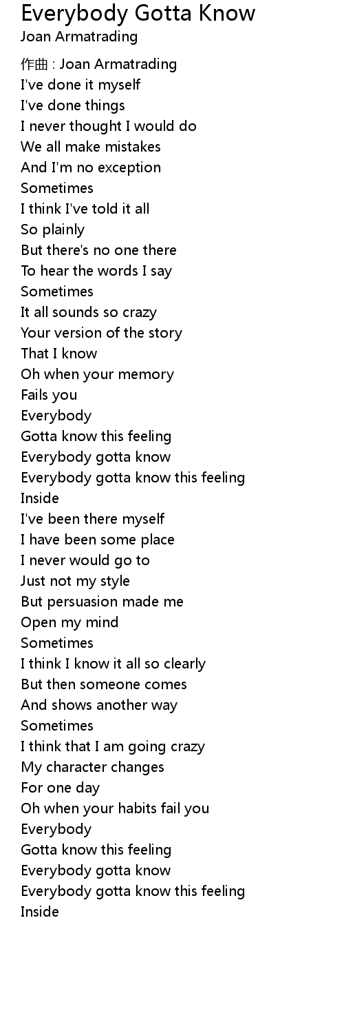| Everybody gotta know | |