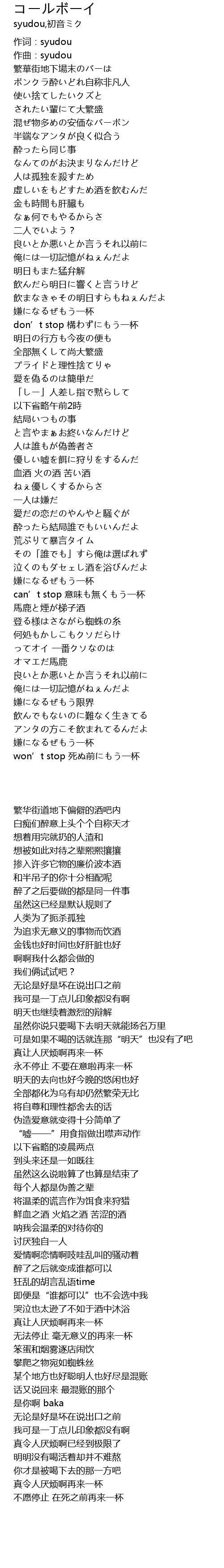 | [02:58.930] | 真令人厌烦啊再来一杯 |