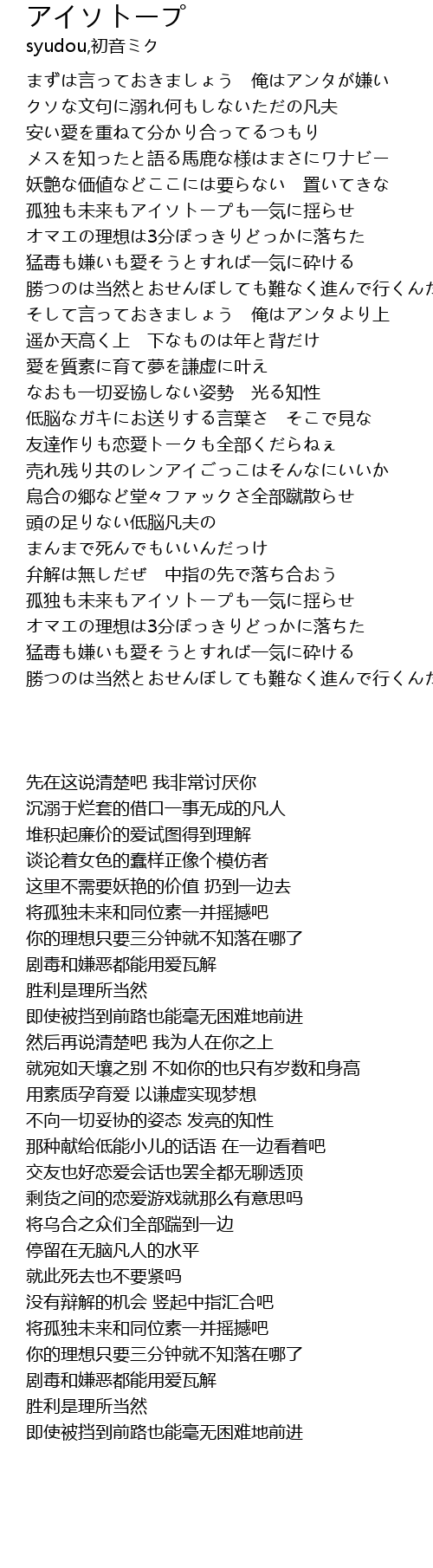 | [02:23.423] | 猛毒も嫌いも愛そうとすれば一気に砕ける |
