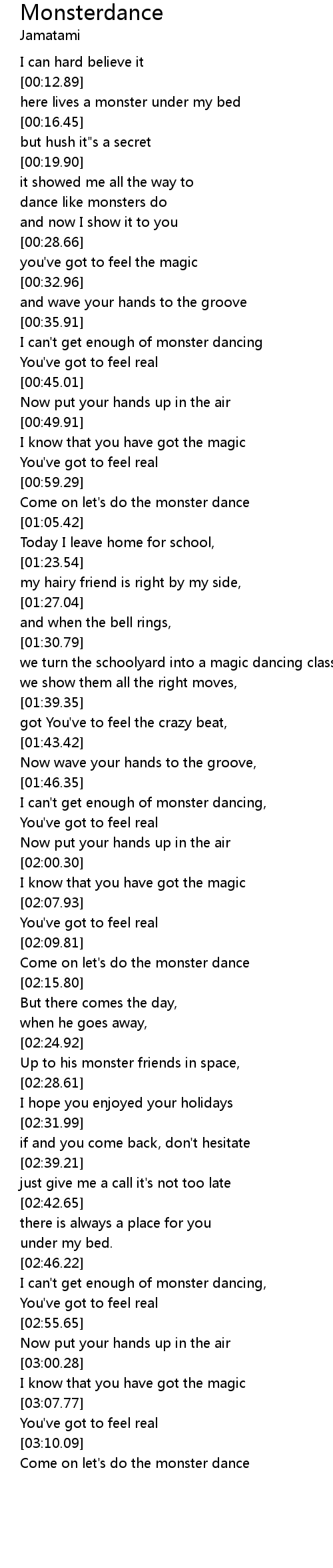 I can't get enough of monster dancing, |