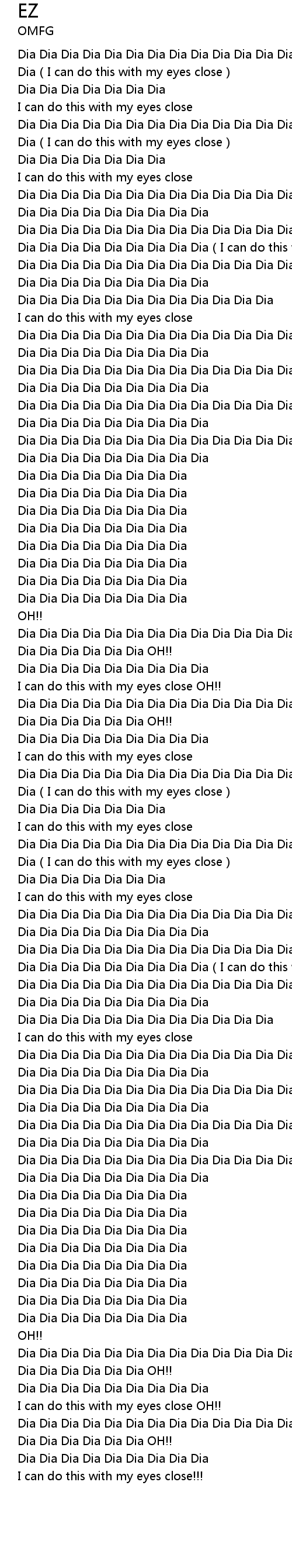 | [00:00.38] | Dia Dia Dia Dia Dia Dia Dia Dia Dia Dia Dia Dia Dia Dia Dia Dia Dia I can do this with my eyes close |