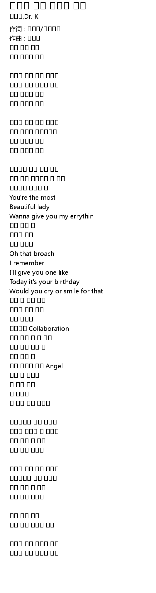 | 作词 : 서익주/찰리파크 | |