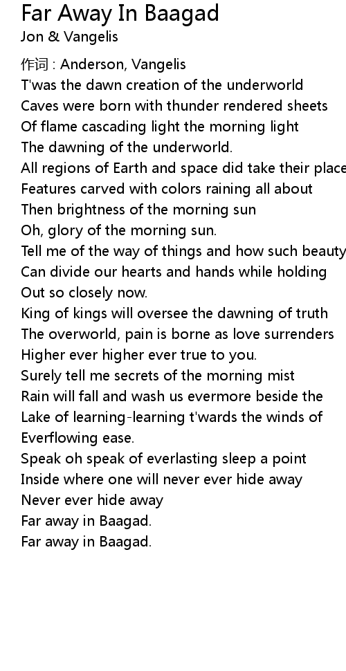 | 歌曲 | Far Away In Baagad |