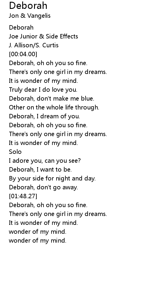 Deborah, oh oh you so fine. |