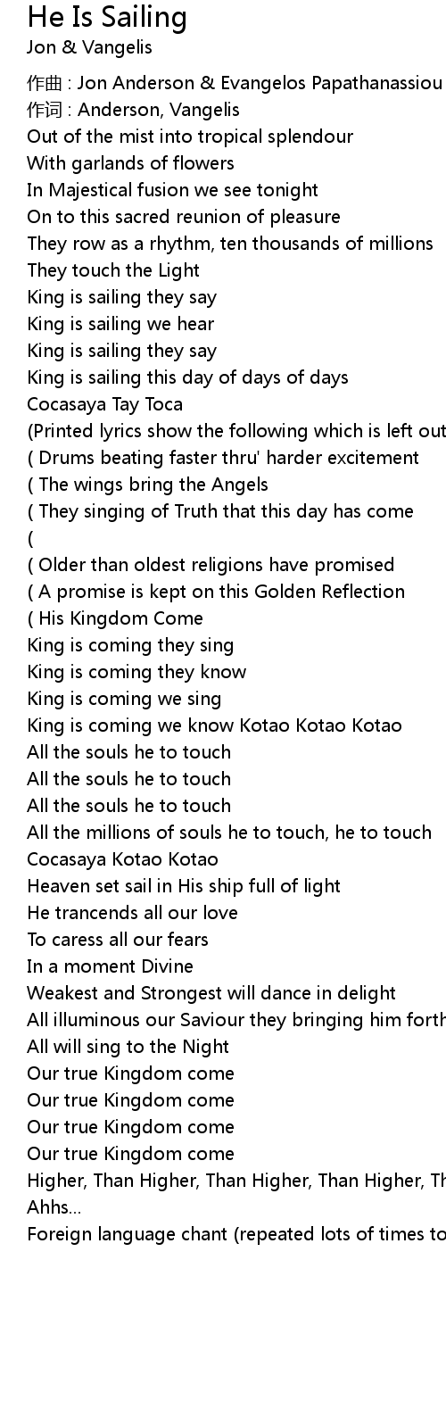 | 作曲 : Jon Anderson & Evangelos Papathanassiou | |