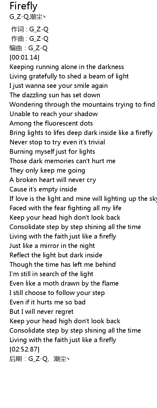 | [00:32.05] | Bring lights to lifes deep dark inside like a firefly |