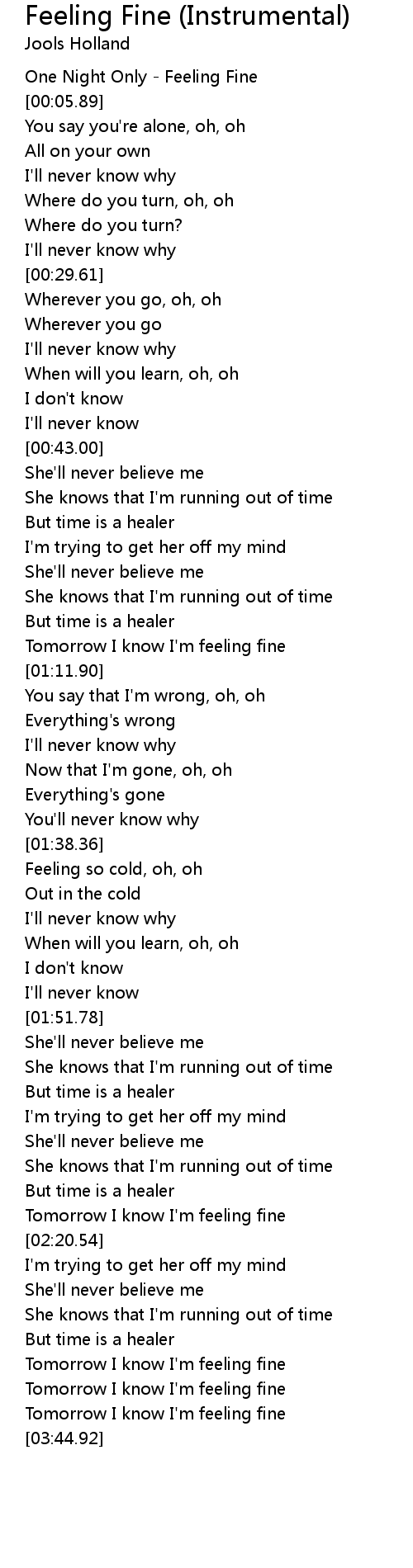 [00:01.12] One Night Only - Feeling Fine