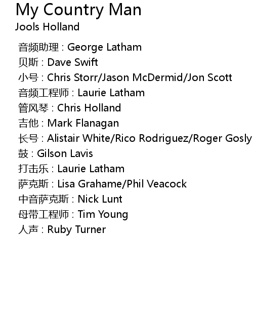 | 歌曲 | My Country Man |