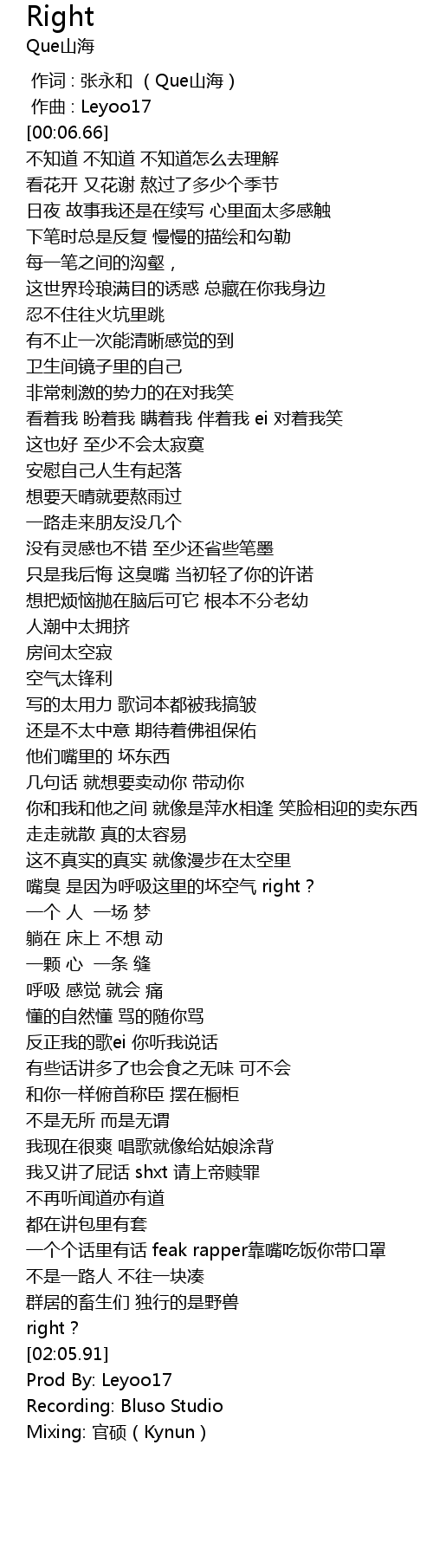 | [02:15.85] | Mixing: guan shuo Kynun |