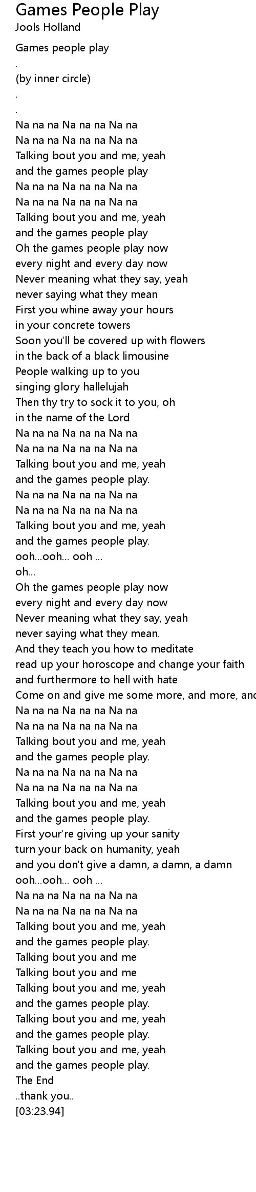 Oh the games people play now |